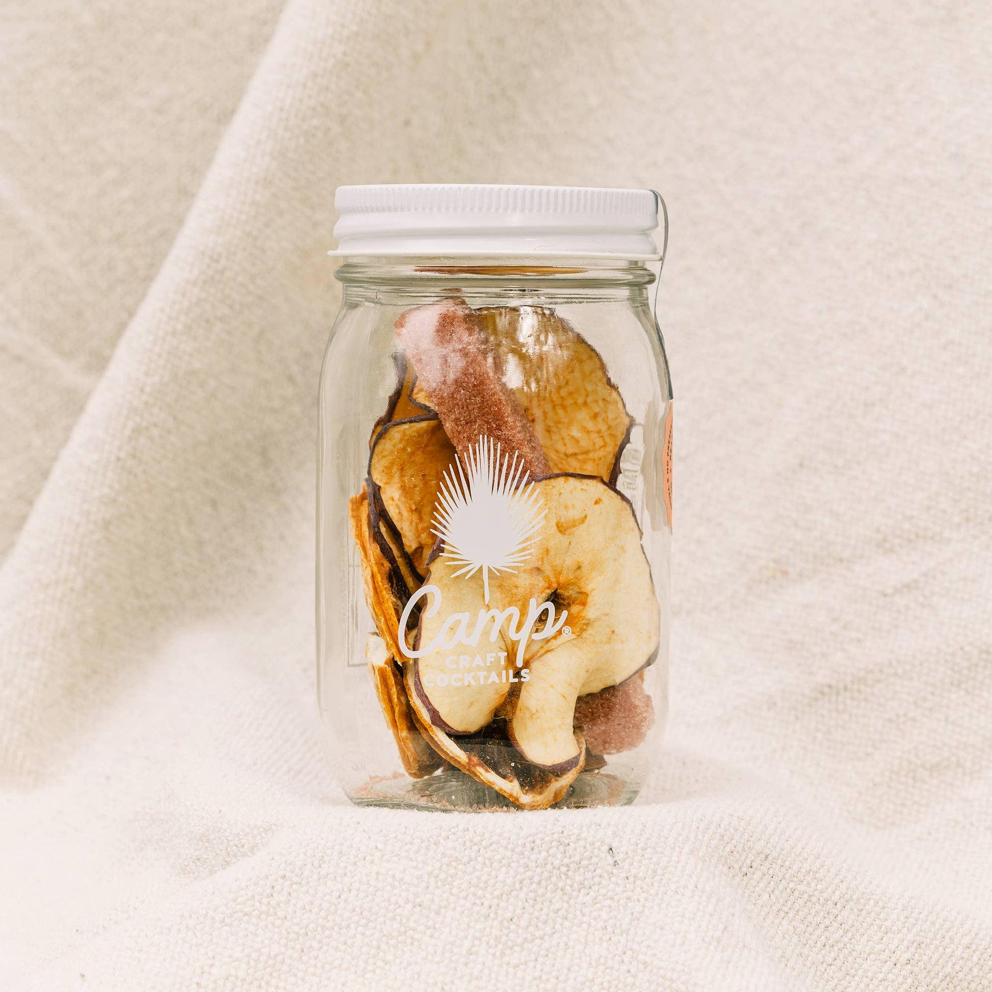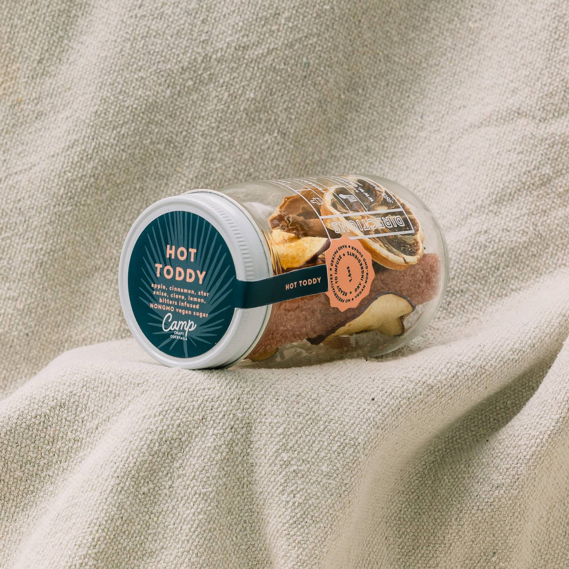 INGREDIENTS: Apple, Cinnamon, Star Anise, Clove, Lemon, Bitters Infused Non-GMO Vegan Sugar INFUSE WITH: Vodka, Gin, Tequila, Rum, Bourbon, or Hot Water for zero-proof recipe. Each jar is filled with Dehydrated Fruit, Herbs and Non-GMO Vegan Sugar. No Preservatives, No Artificial Colors or Flavors. HANDCRAFTED COCKTAILS: Enjoy the perfect Hot Toddy every time with Camp Craft Cocktails’ refined recipe.