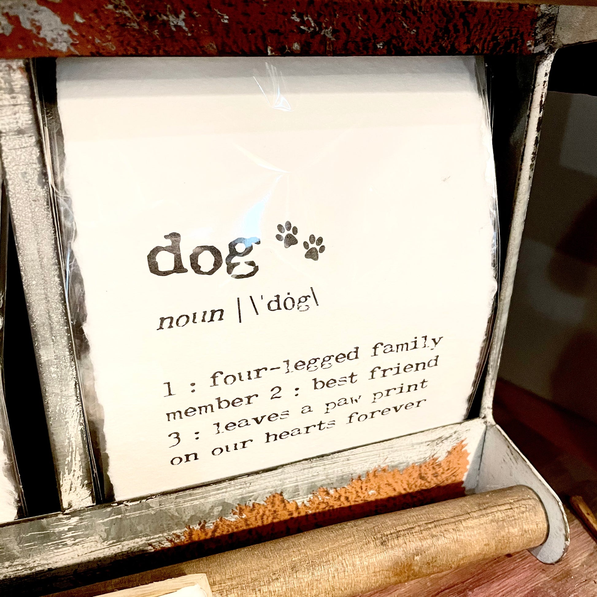 Definition of dog print on raw edge paper, size is a 5"x7"