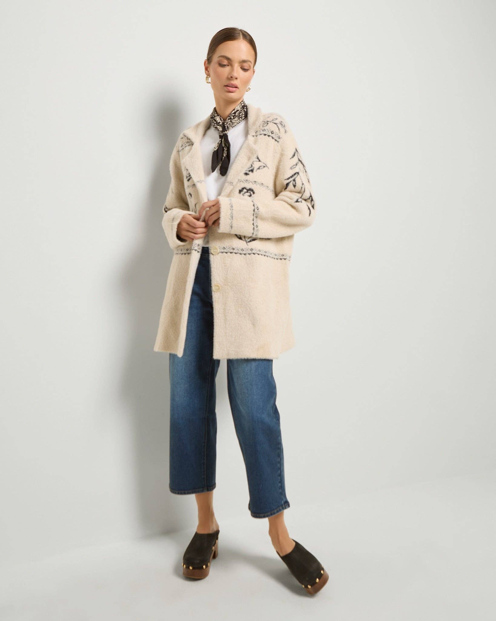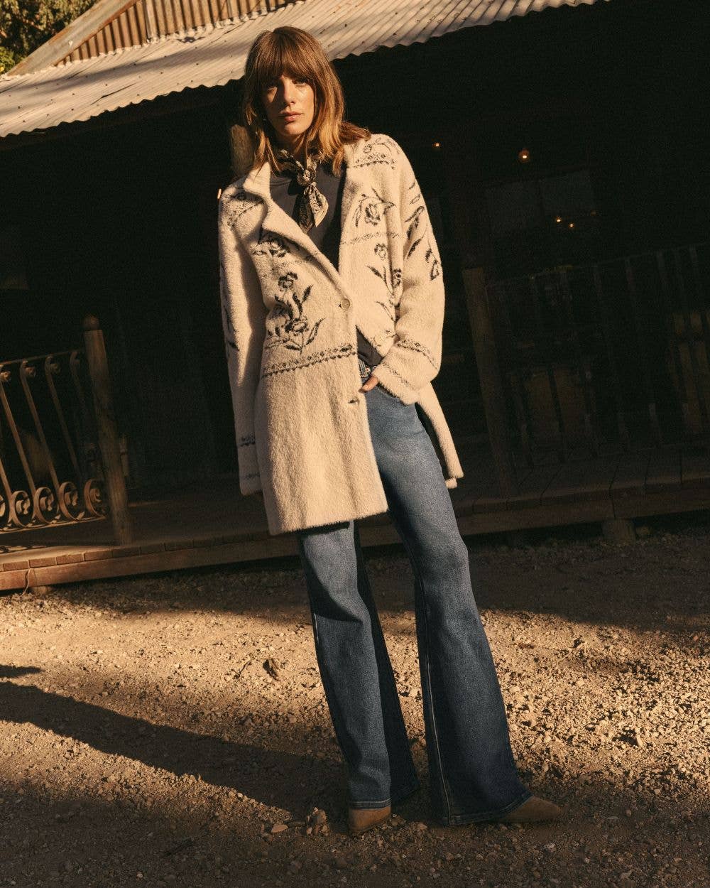 Some pieces just feel like they’ve lived a few lives. This dreamy coatigan features soft-touch eyelash yarn and a floral motif that feels both grounded and ethereal. The kind of layer you throw over your shoulders and go—no plan needed, just vibes.